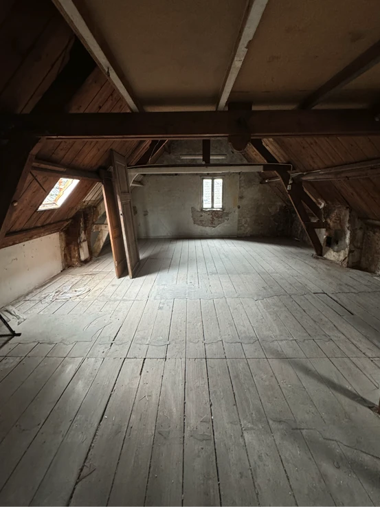 - Vloeren verwijderen: Alle oude vloerbedekking, van tapijt tot linoleum, is verwijderd om de originele ondervloer bloot te leggen.